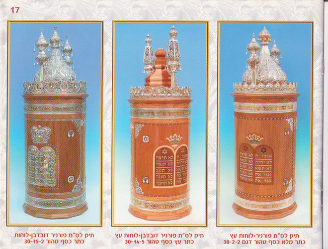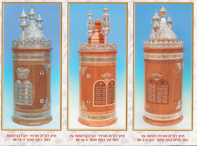 Nous vendons à prix préférentiels, des Mezouzot, des phylactères, des rouleaux de Torah, des megilot, des ketoubot (contrats de mariage), la Parachat Haketoret , (prière qui décrit tout le rituel des offrandes de parfums au Temple. Celle-ci est une ségoula pour la réussite dans tous les domaines). Ces différents objets peuvent éventuellement être ornés de motifs artistiques faits mains.